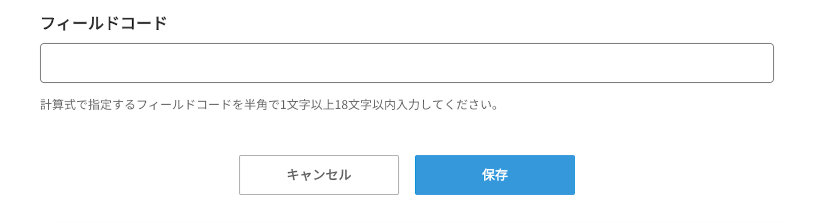 フィールドコードの制限について フィールドコードの設定には以下の制限があります。 ● 半角で1文字以上18文字以内で入力してください。 ● アプリ内で重複しないフィールドコードを指定してください。 ● 半角の英字(A..Z または a..z)、数字(0~9)とアンダーバー(_ )を使用してください。 ● 先頭の文字は英字(A..Z または a..z)にしてください。 ● 末尾の文字はアンダーバー(_)以外にしてください。 ● フィールドコードには予約され使えない文字列があります(and, true, if など) |