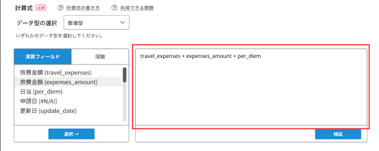 計算式が完成したら、[検証]ボタンをクリックします。